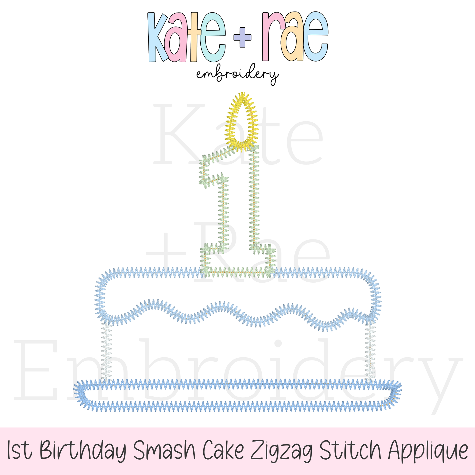 1st Birthday Smash Cake Zigzag Stitch Applique Embroidery Design