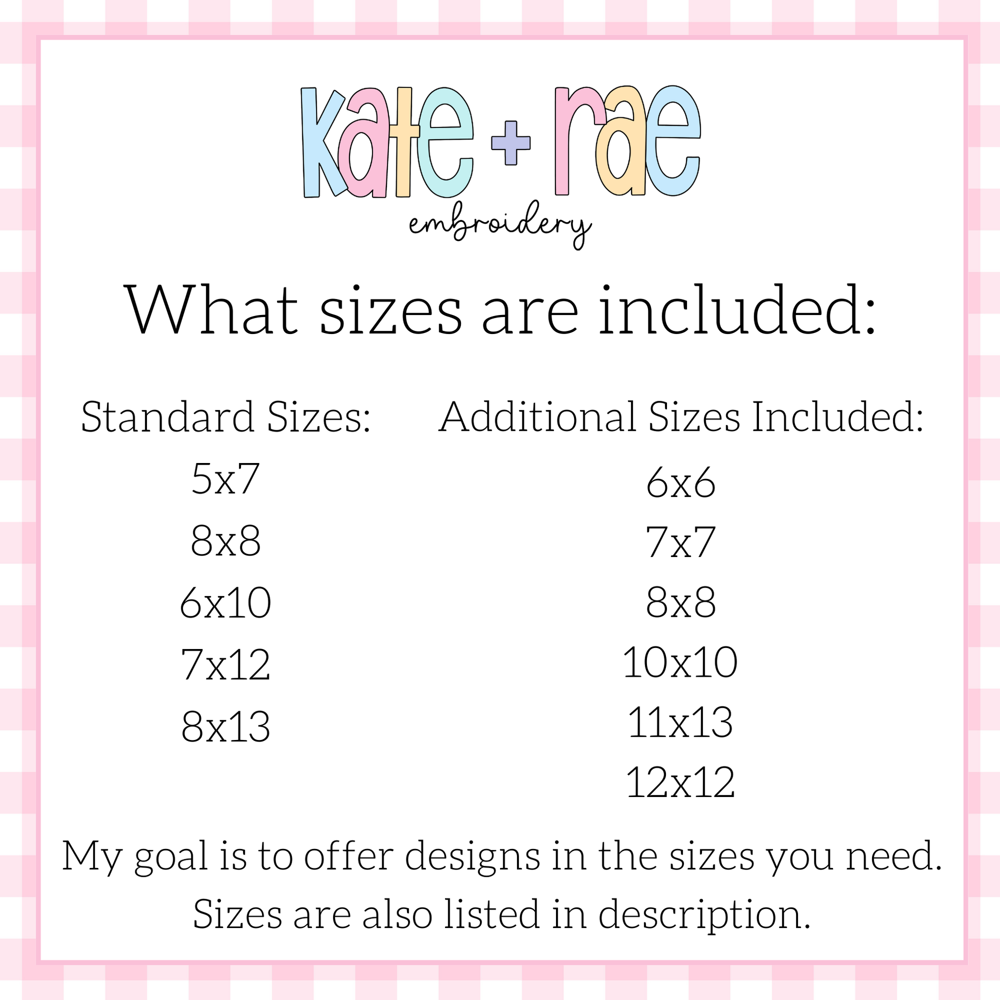 Sizes included: 5x7, 6x6, 6x10, 7x7, 7x12, 8x8, 8x13, 10x10, 11x13, 12x12