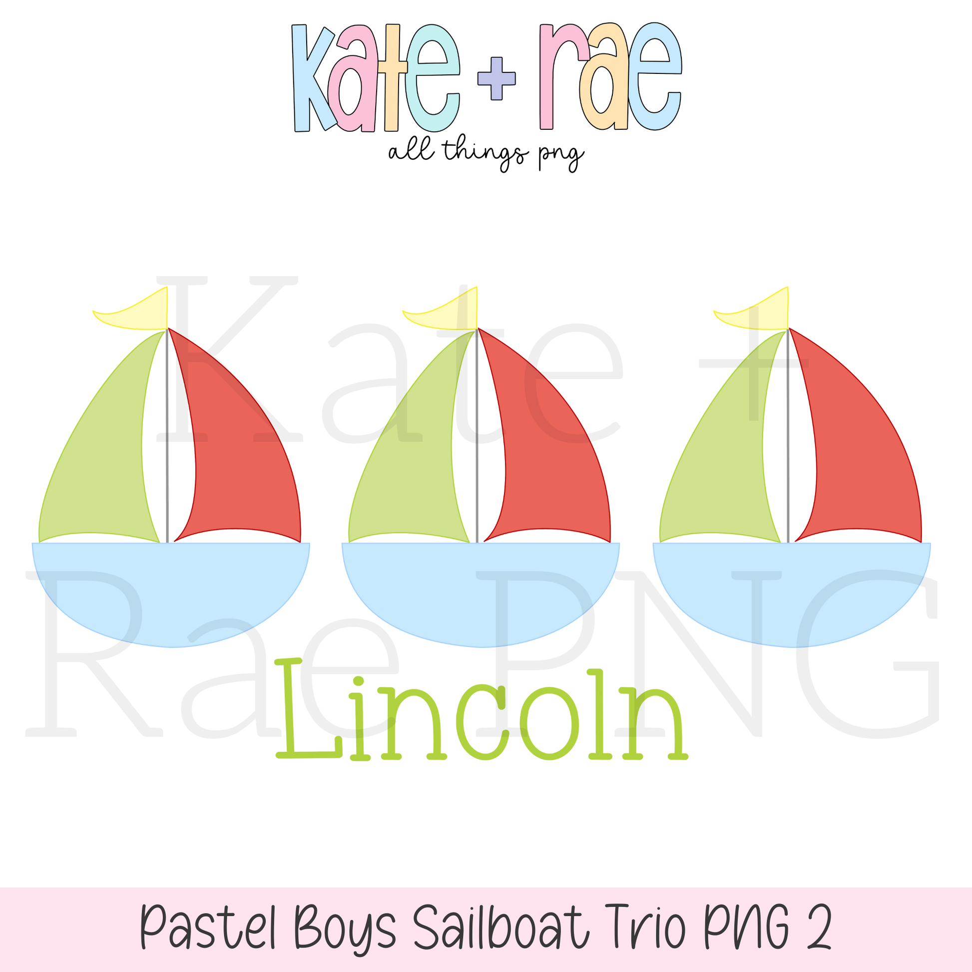 Boy's Pastel Sailboat Trio PNG (pastel 2)