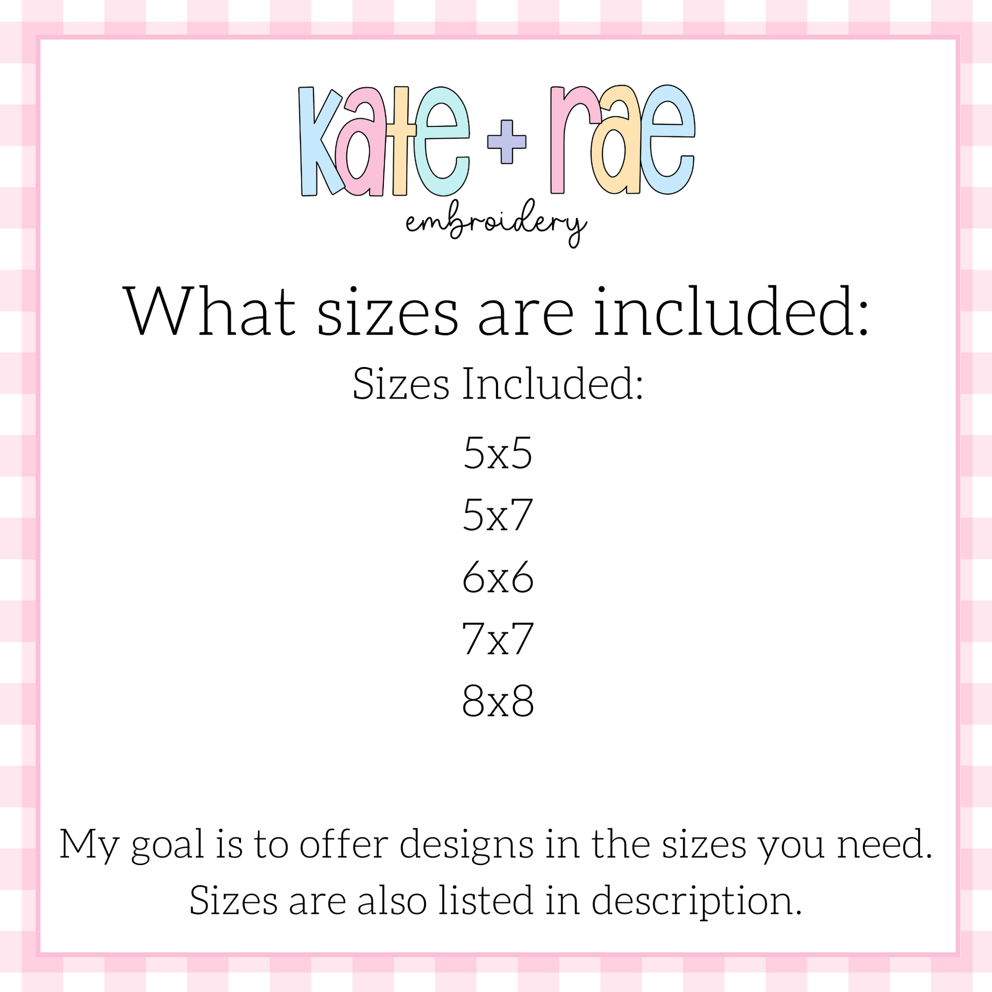 Sizes included: 5x5, 5x7, 6x6, 7x7, 8x8.