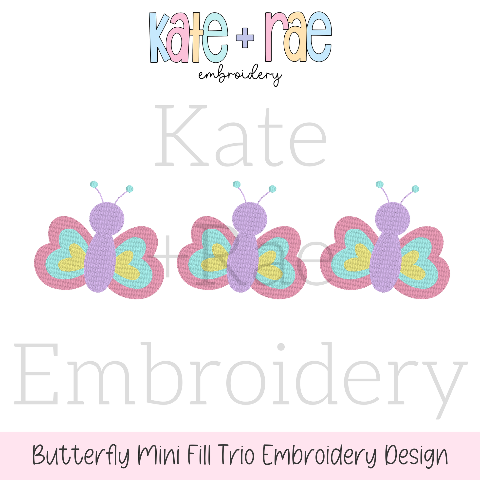 Butterfly Trio Mini Fill Stitch Embroidery Design