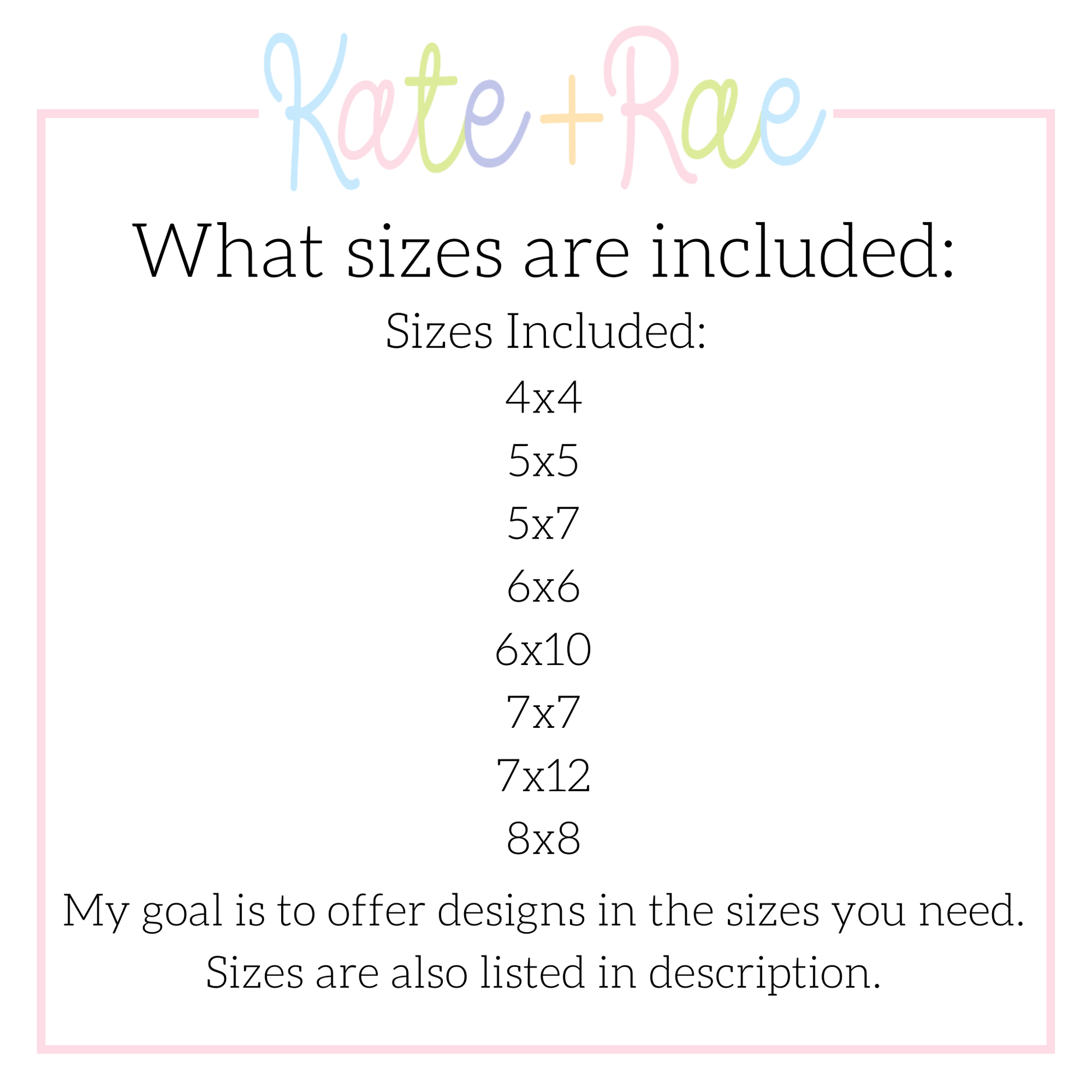 Sizes included: 4x4, 5x5, 5x7, 6x6, 6x10, 7x7, 7x12, 8x8