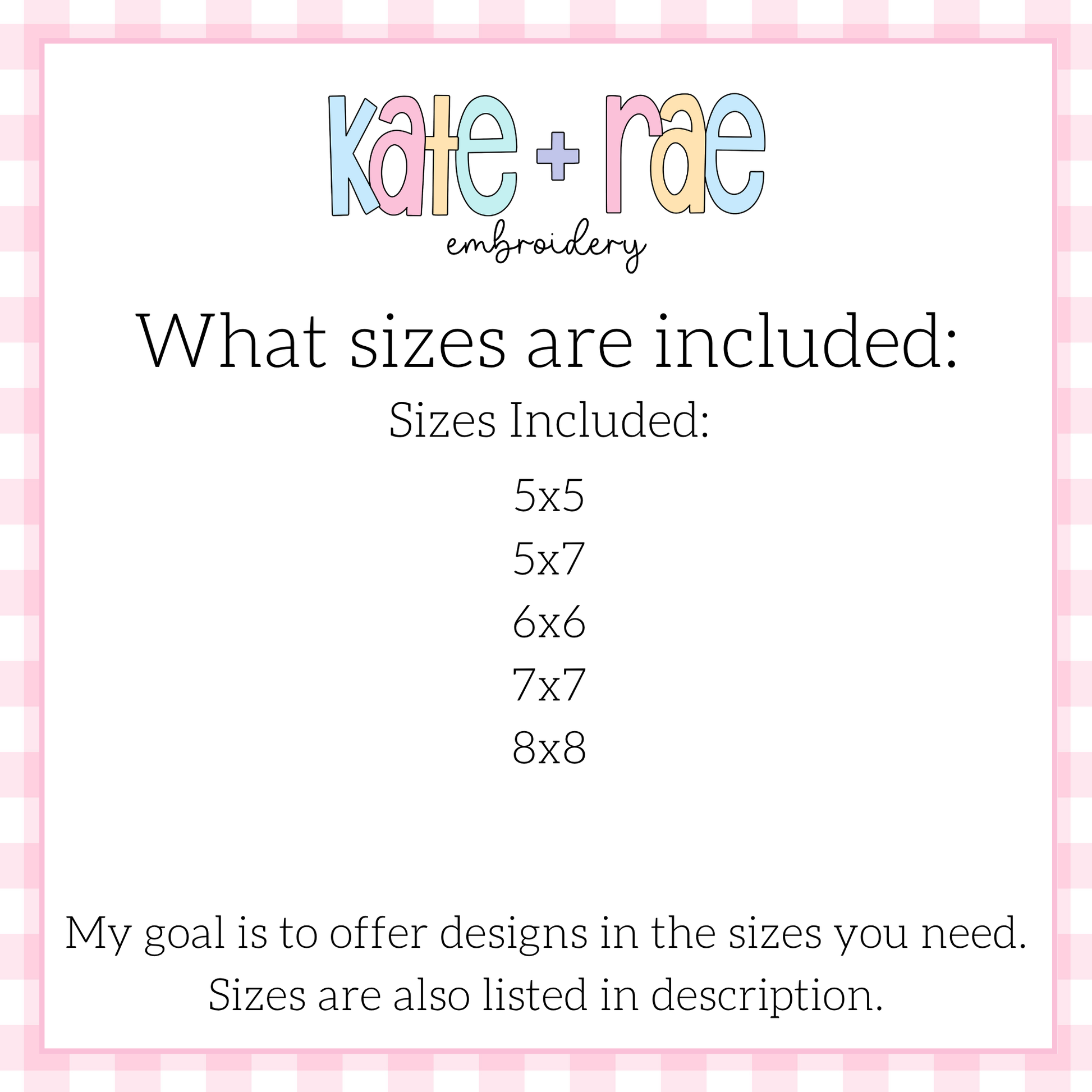 Sizes included: 5x5, 5x7, 6x6, 7x7, 8x8.