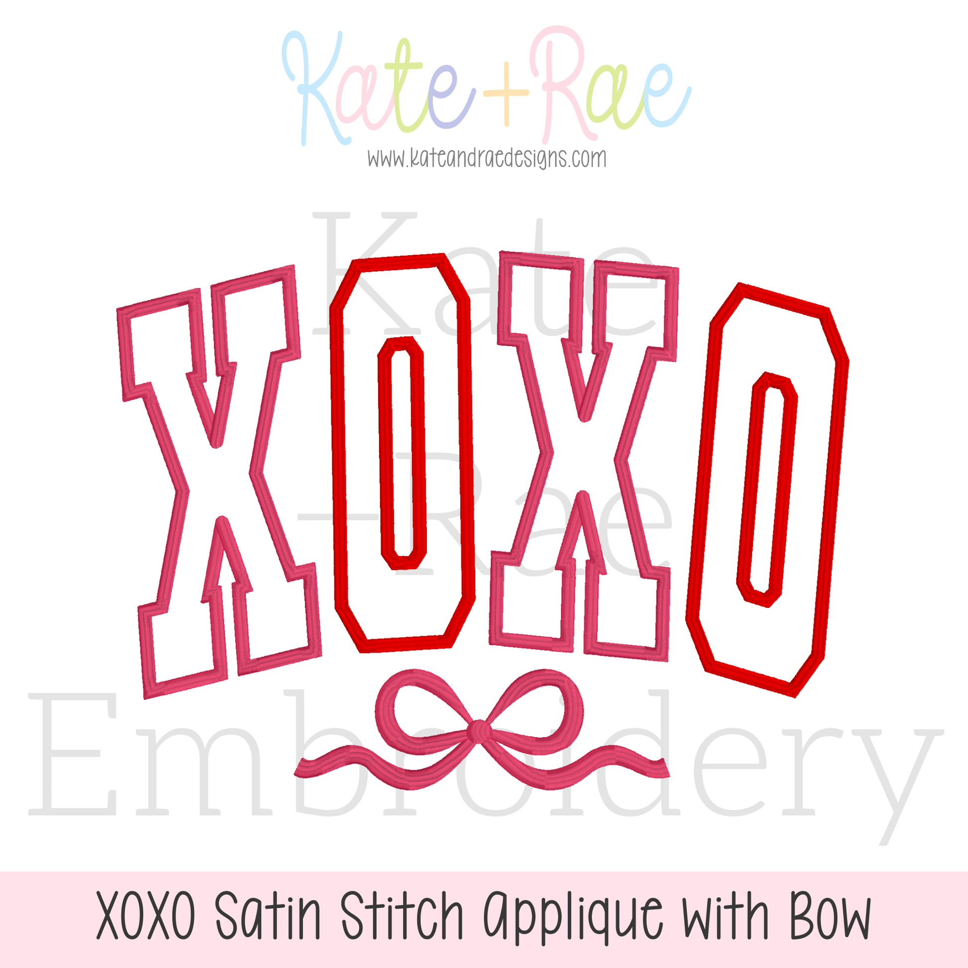 Curved XOXO with Bow Satin Stitch Applique Embroidery Design