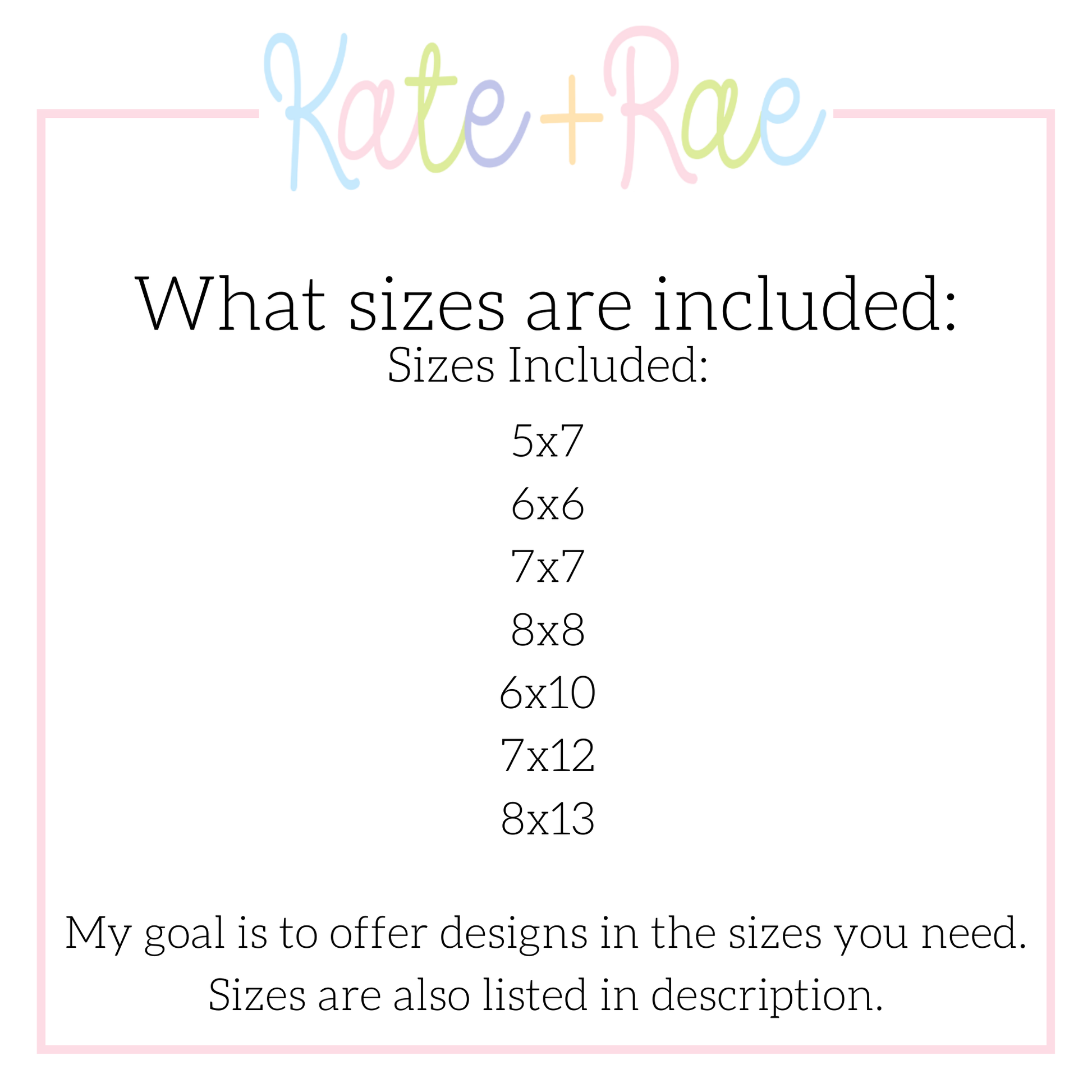 Sizes included: 5x7, 6x6, 6x10, 7x7, 7x12, 8x8, 8x13..