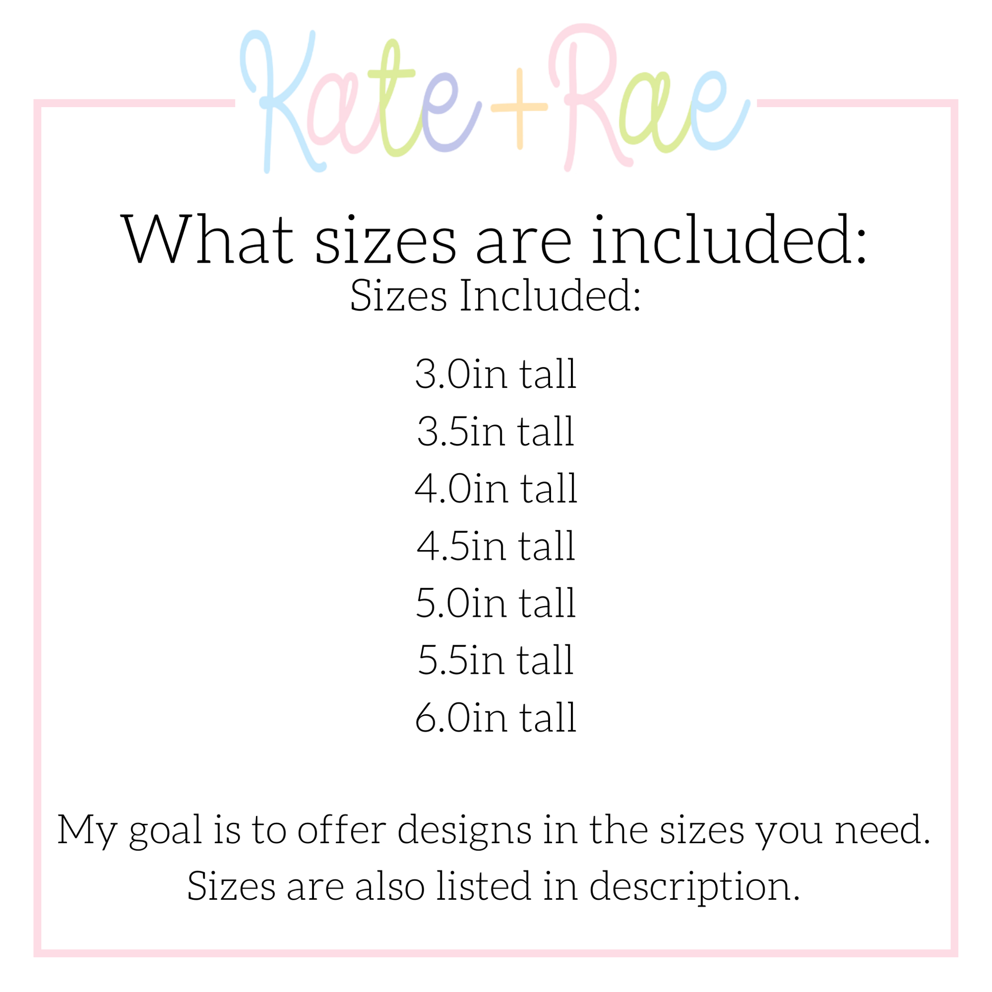 Sizes included: 3.0in tall, 3.5in tall, 4.0in tall, 4.5in tall, 5.0in tall, 5.5in tall, 6.0in tall.