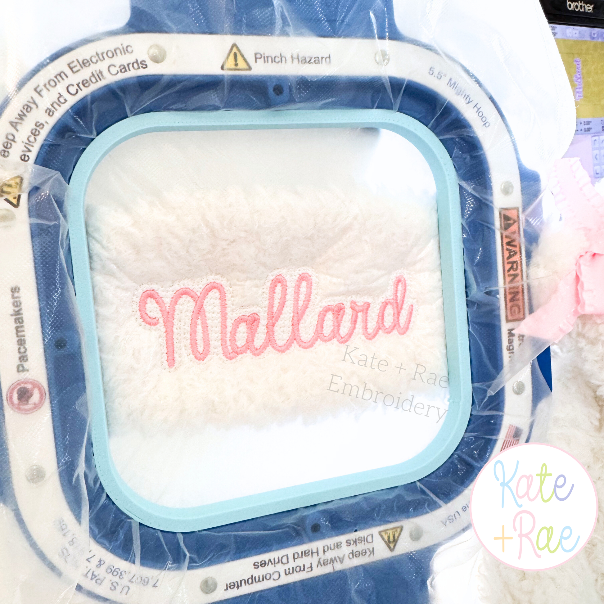 Our embroidery water-soluble stabilizer holders are designed, engineered, and printed in-house by Kate + Rae Designs.
