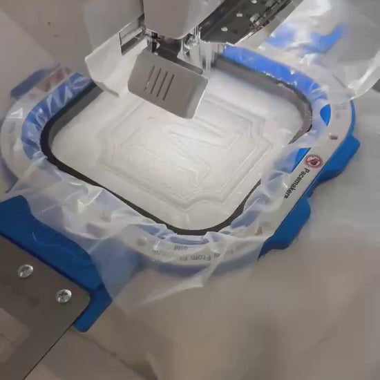 Our engineered topping holder is designed to securely hold water-soluble stabilizer and HTV in place while embroidering. It helps prevent shifting, slipping, and misalignment for cleaner, more consistent results. This innovative solution is patent pending and thoughtfully designed for embroidery businesses that value efficiency and precision.