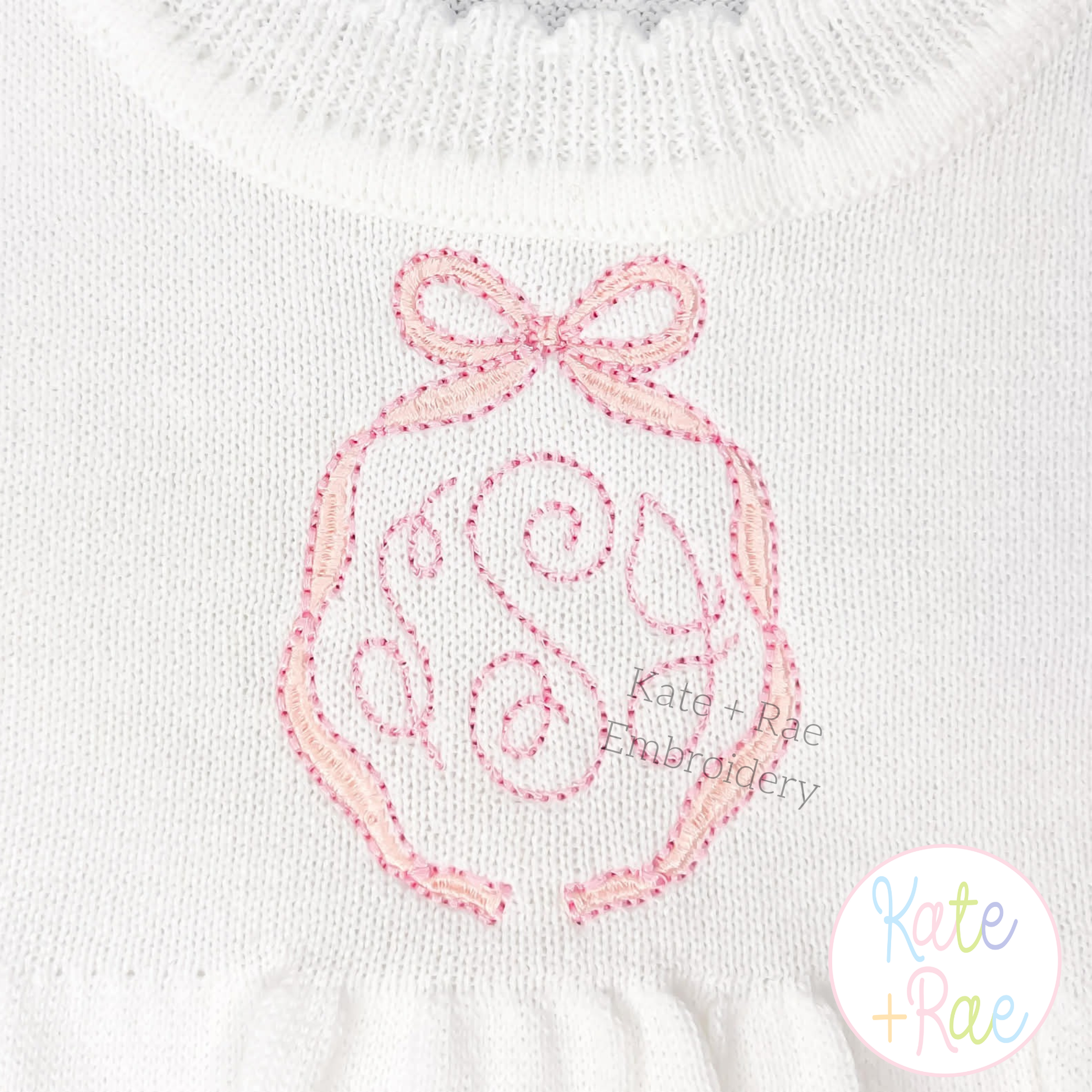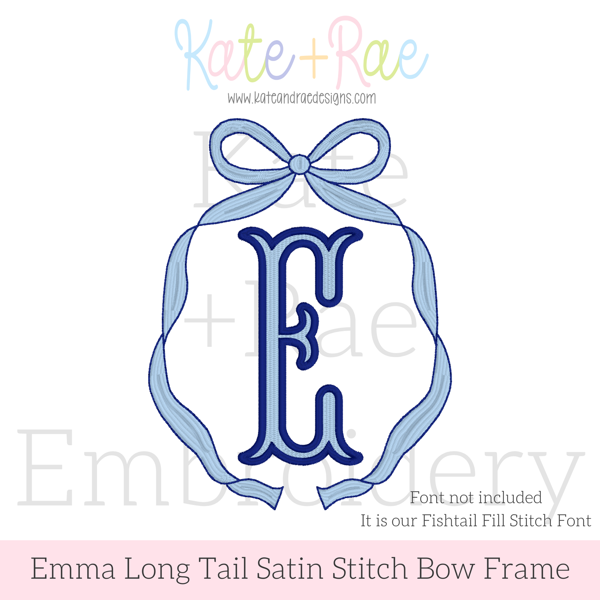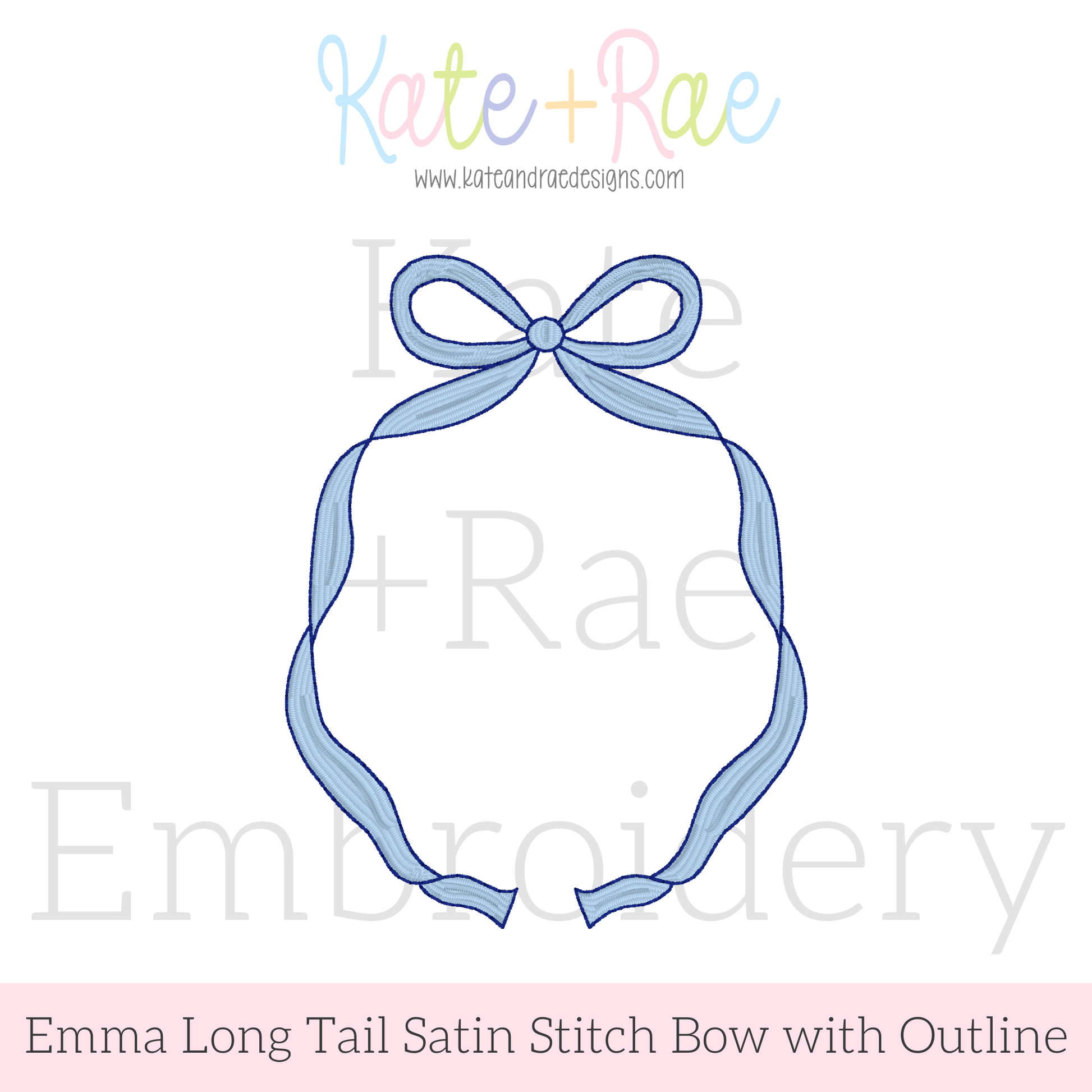 Emma Satin Stitch Long Tail with Bean Stitch Outline Monogram Bow Embroidery Design