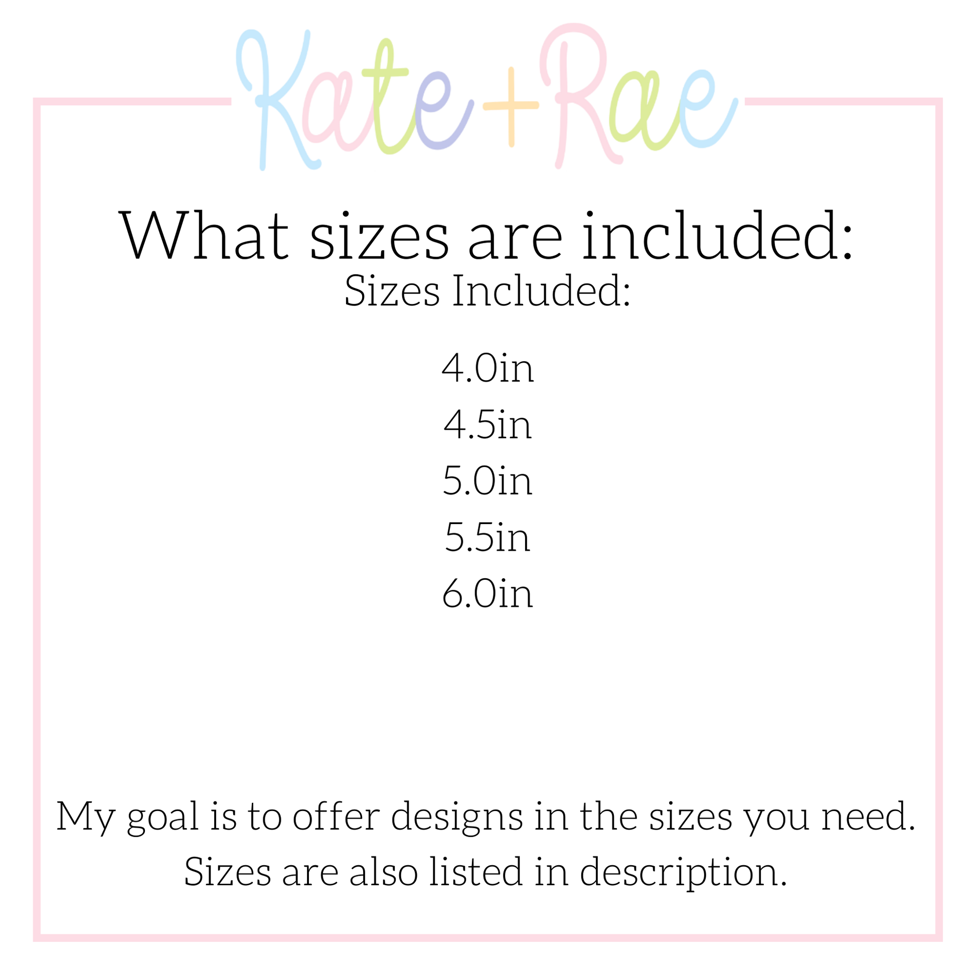 If you would like this design in another size or file extension, please purchase this listing and the "resizing of existing embroidery design" listing. In the comments of your order, please include design name, size requested, and recipient email.