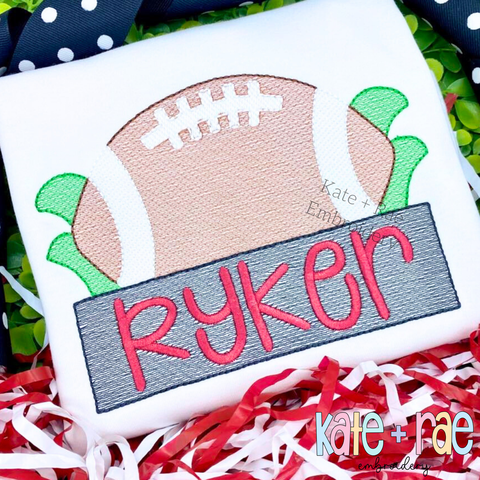 Football with Name Plate Sketch Stitch Applique Embroidery Design