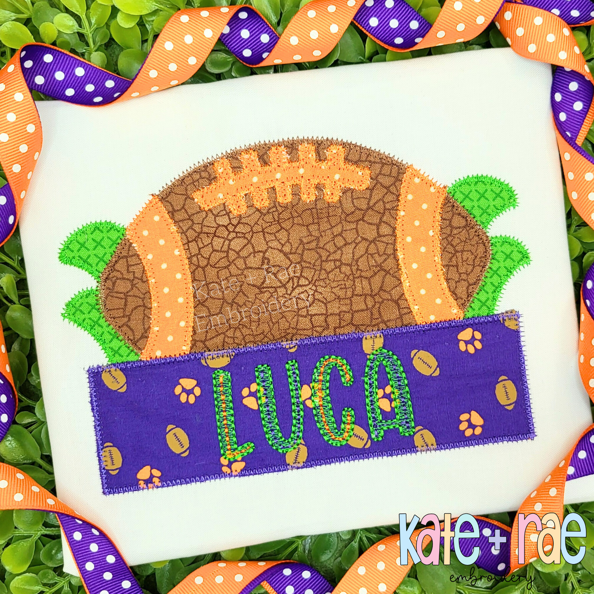 Football with Name Plate Zigzag Stitch Applique Embroidery Design