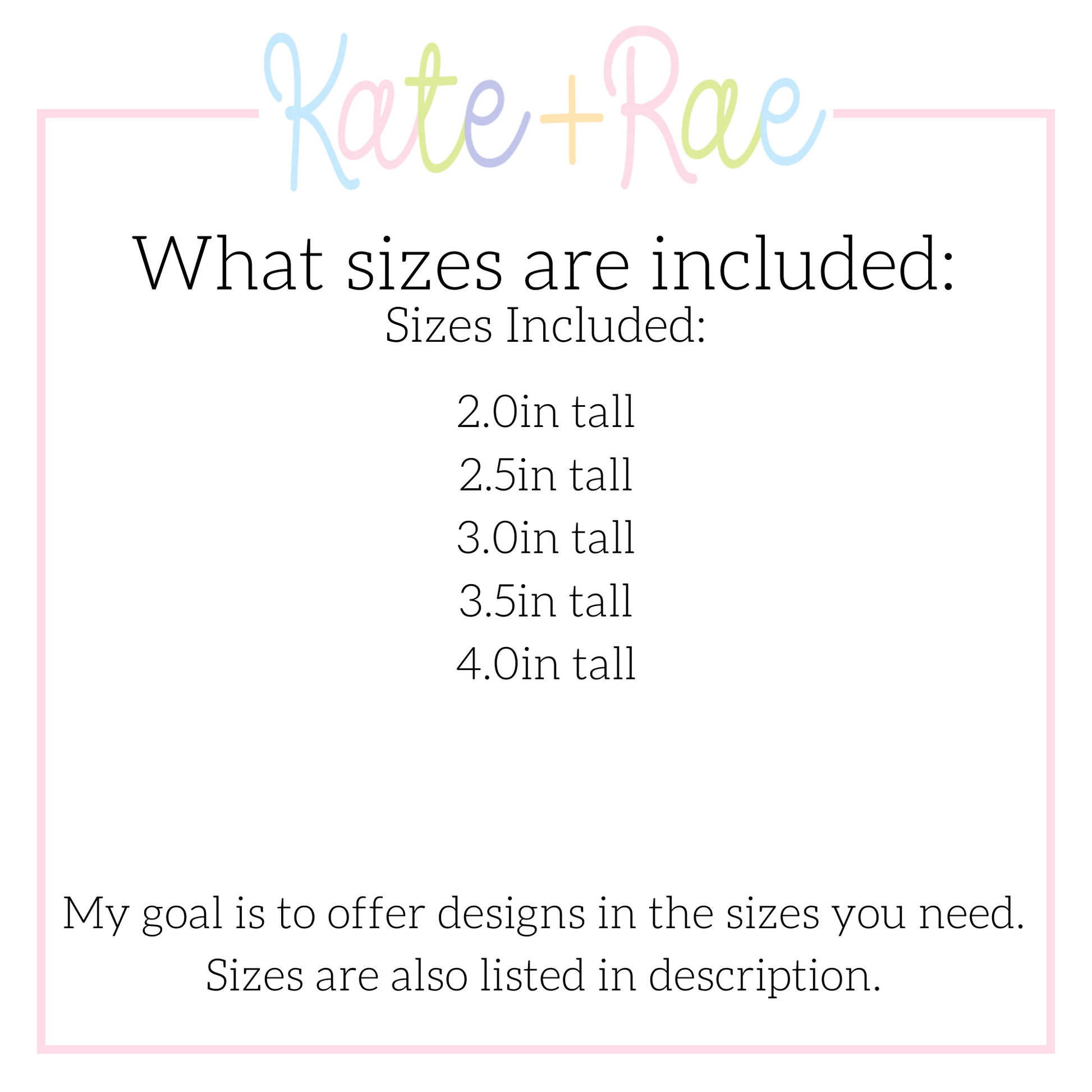 Sizes included: 2.0in tall, 2.5in tall, 3.0in tall, 3.5in tall, 4.0in tall.