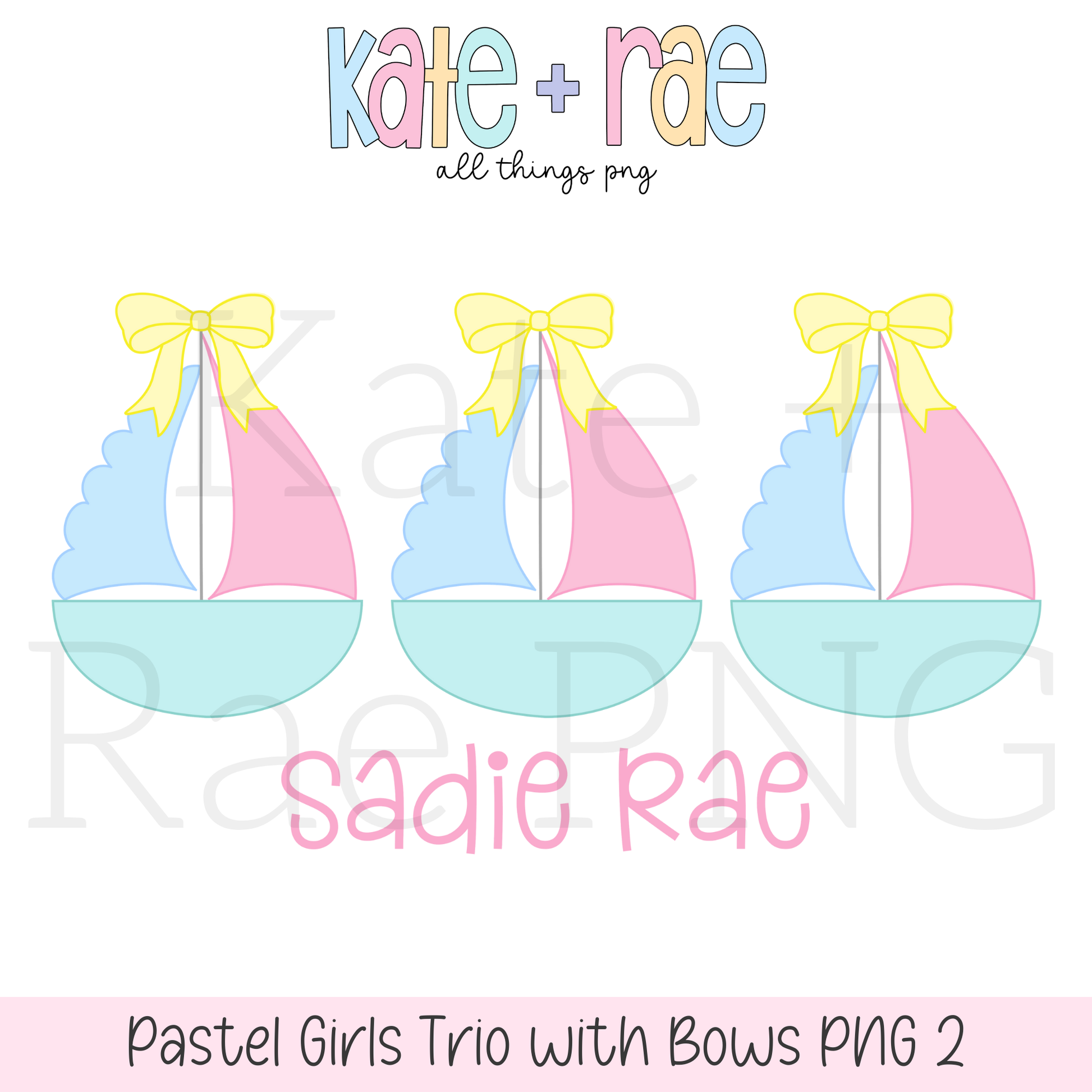 Girl's Pastel Sailboat Trio with Bows PNG (pastel 2)