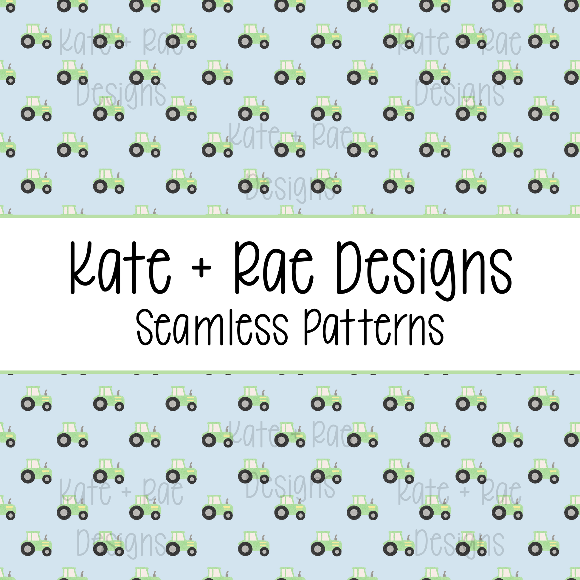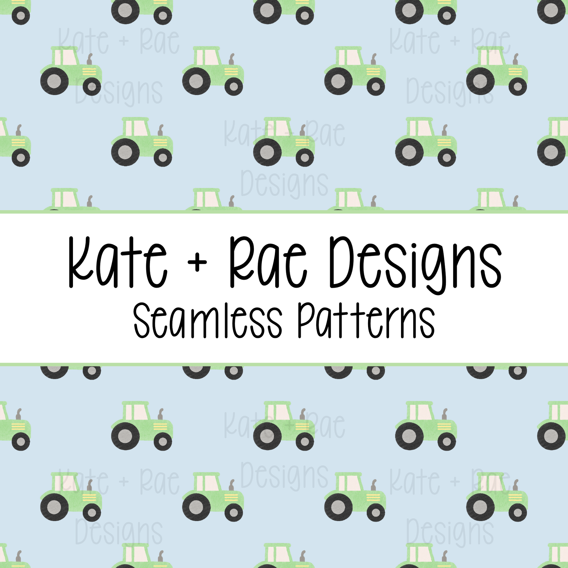 Green Tractor Watercolor Seamless Pattern with Blue Background