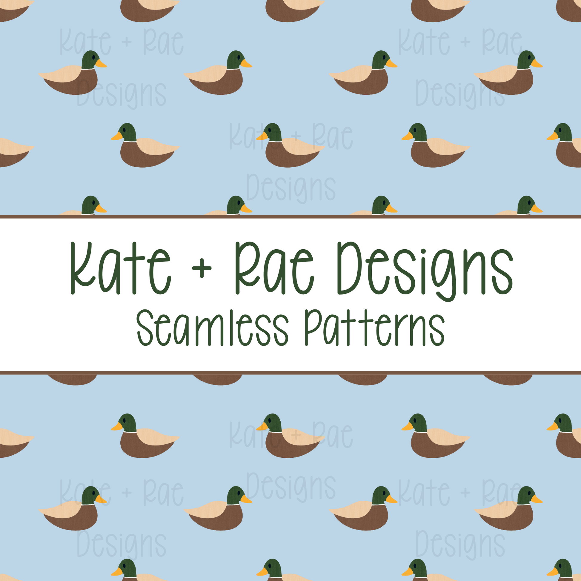 Mallard Duck Watercolor Seamless Pattern with Blue Background