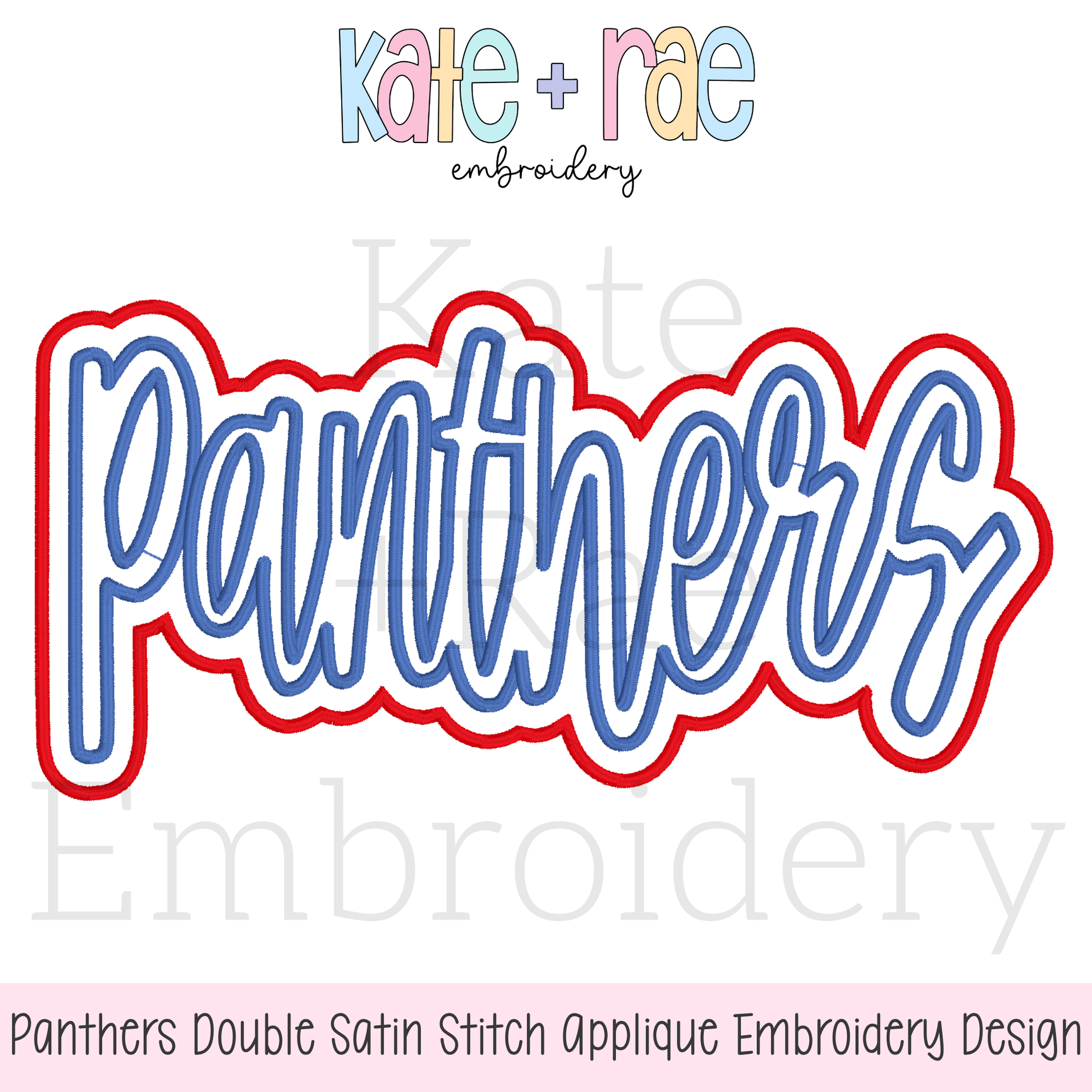Panthers Script Double Satin Stitch Applique Embroidery Design
