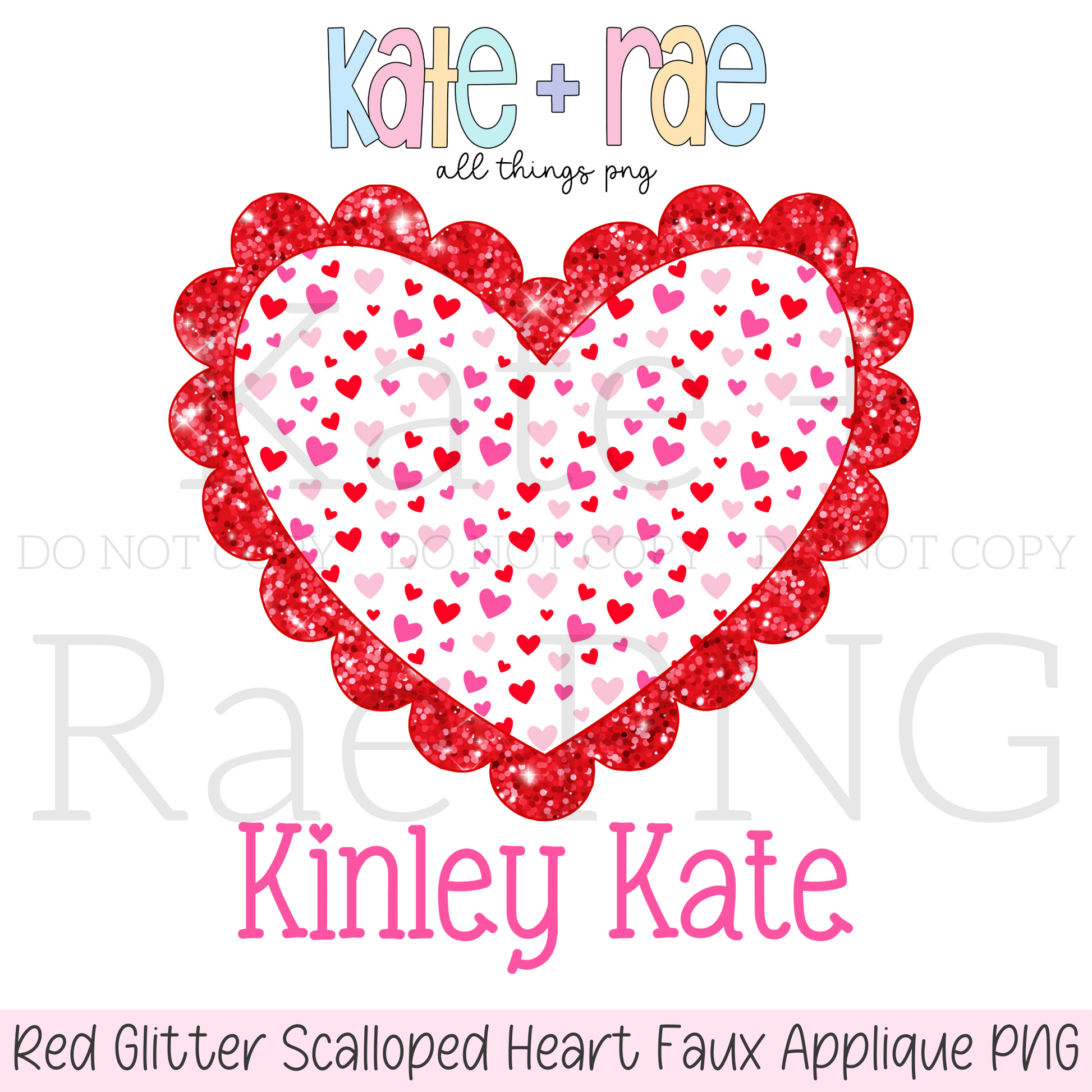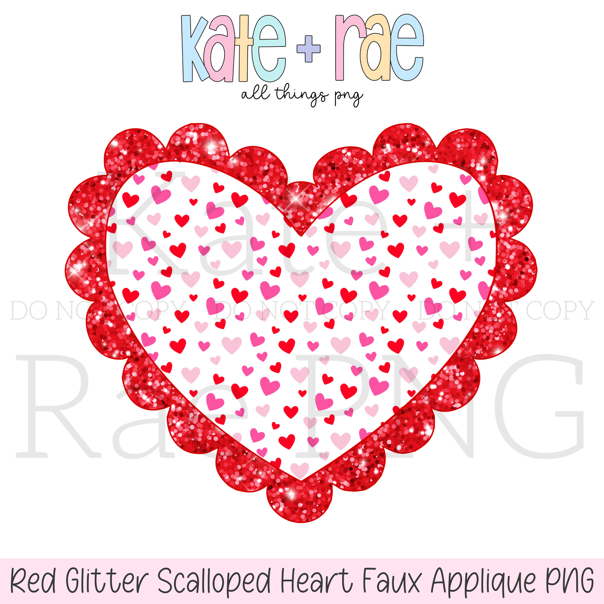 Red Glitter Scalloped Double Heart Faux Applique PNG
