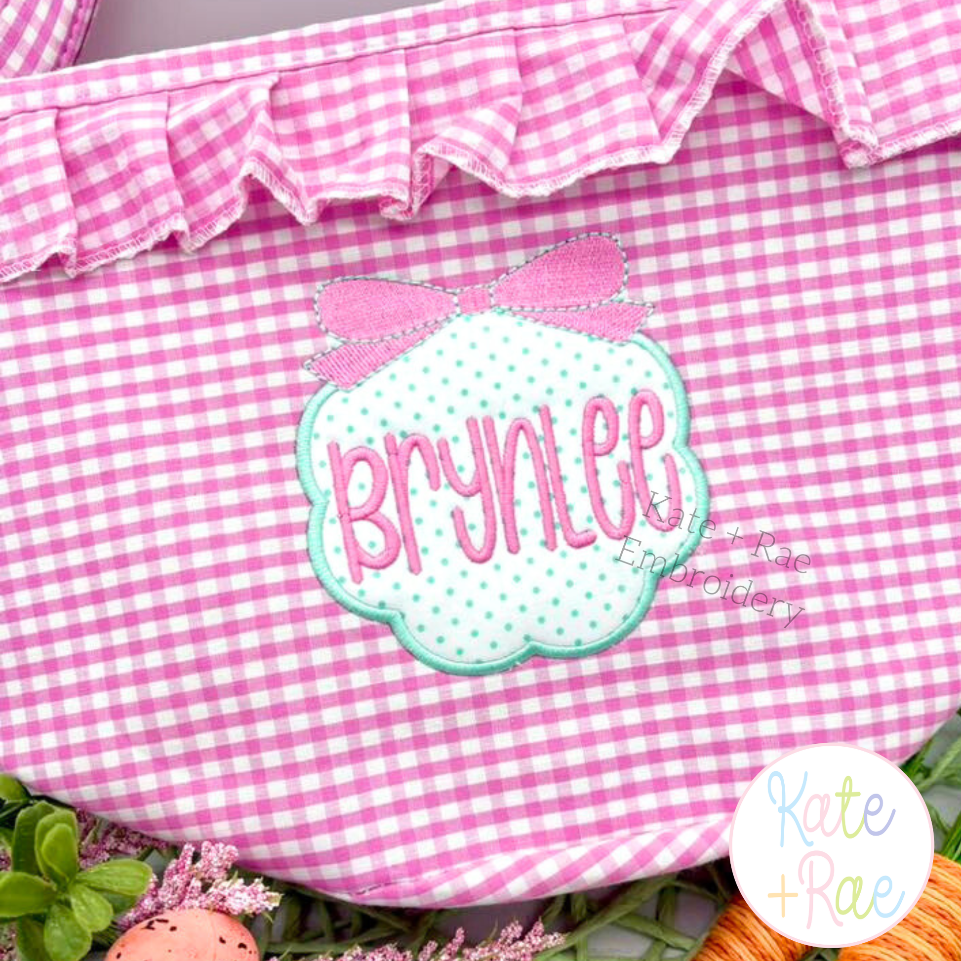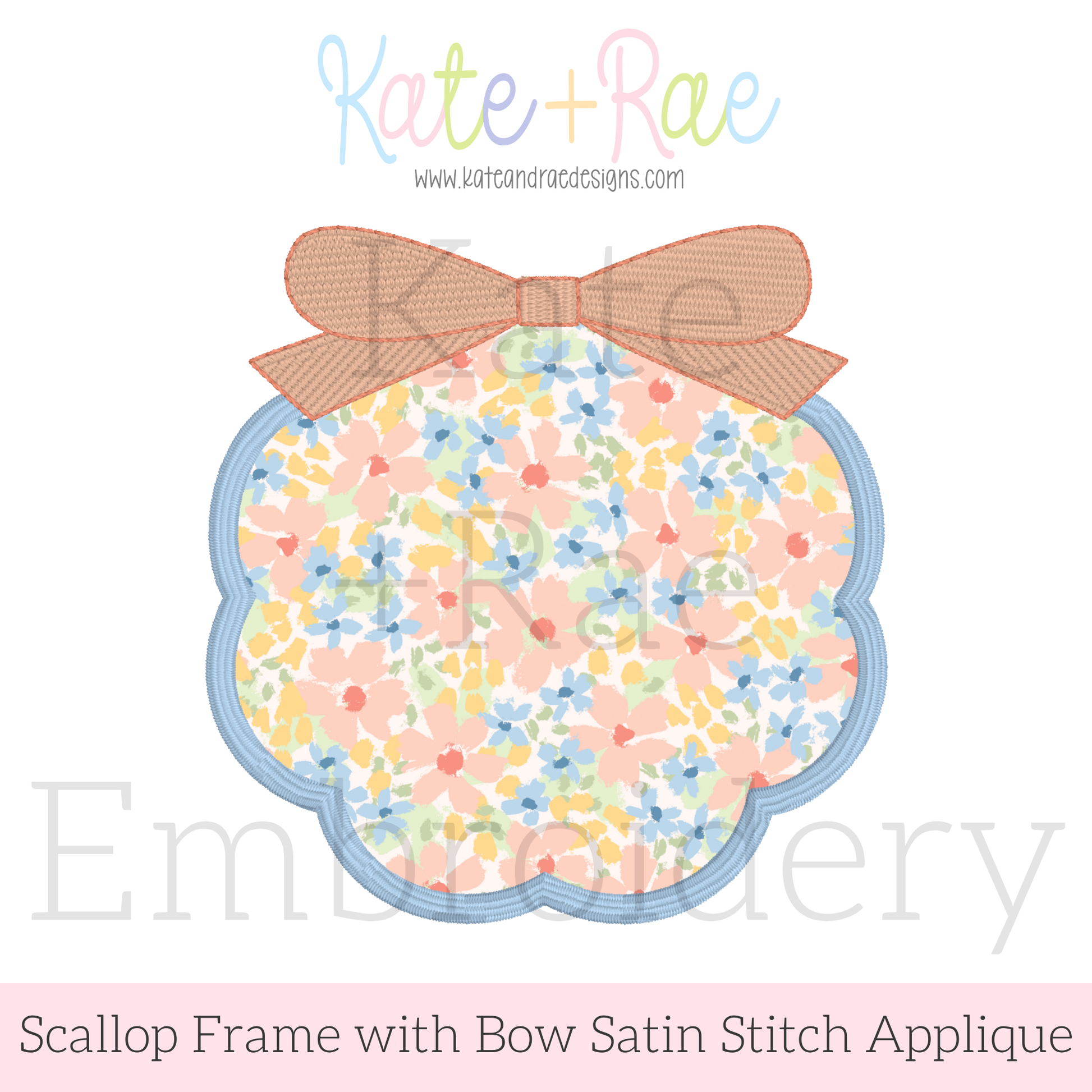 Scallop Circle Monogram Frame with Bow Satin Stitch Applique