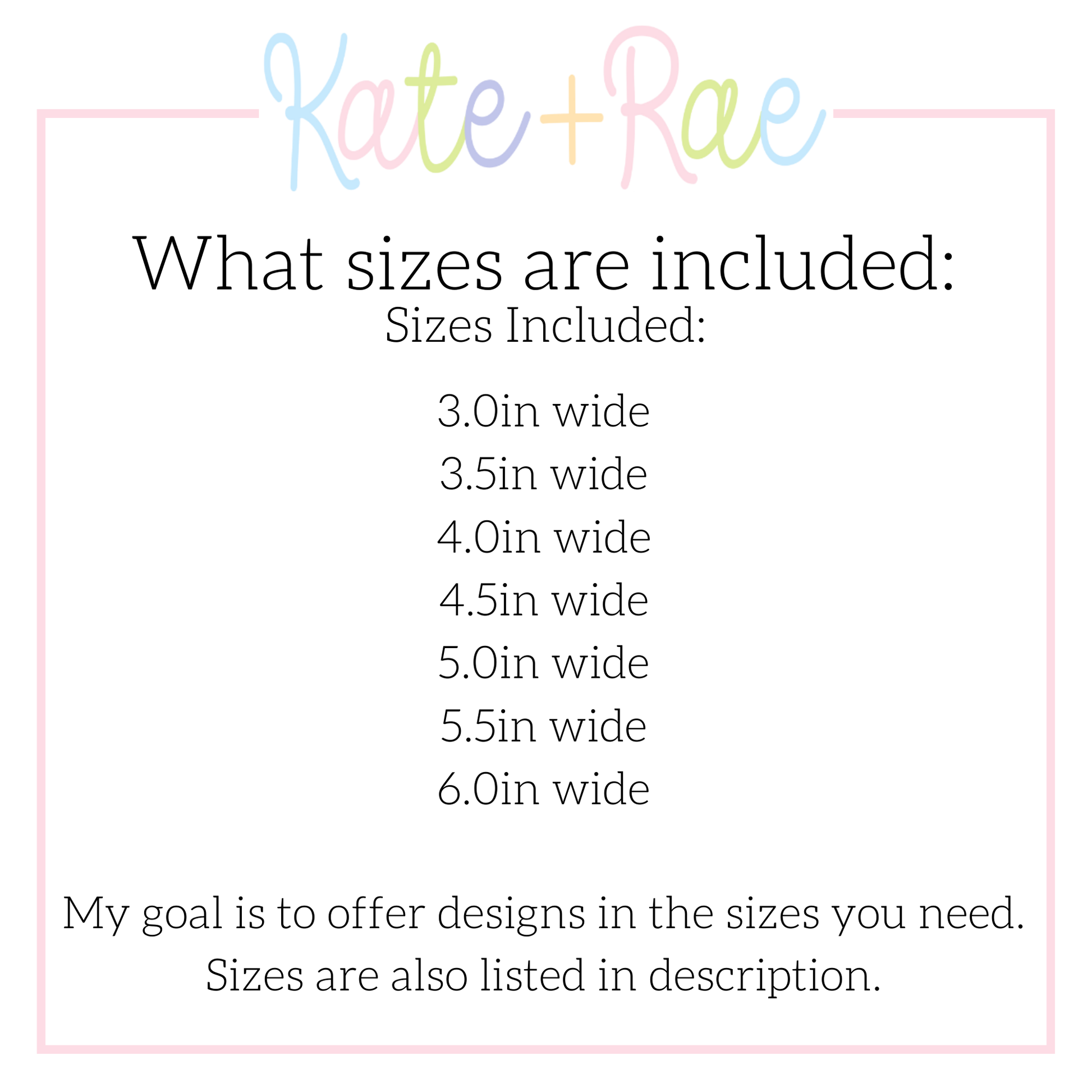 Sizes included: 3.0in, 3.5in, 4.0in, 4.5in, 5.0in, 5.5in, 6.0in (all measured in width)