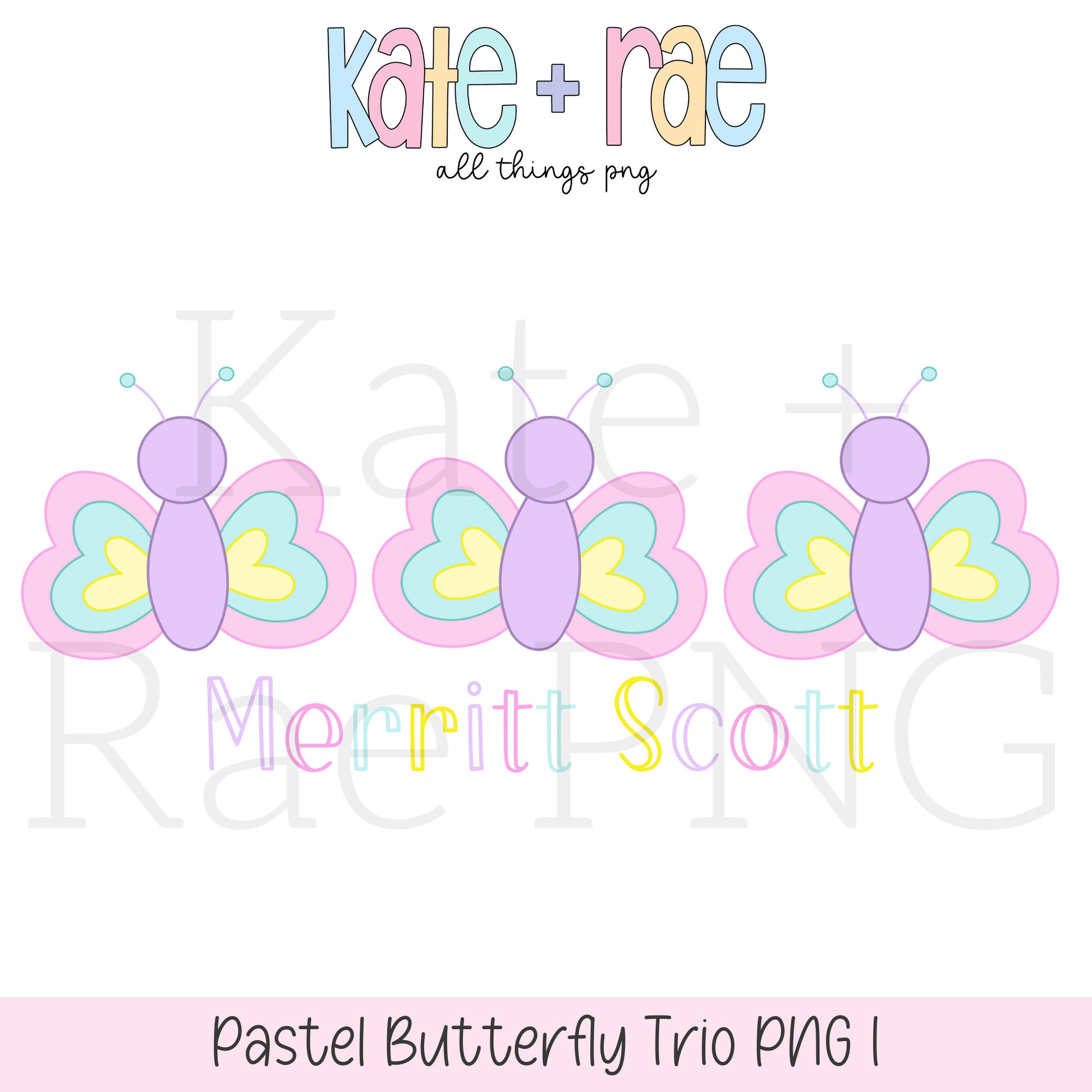 Girls Pastel Multicolor Butterfly Trio PNG.