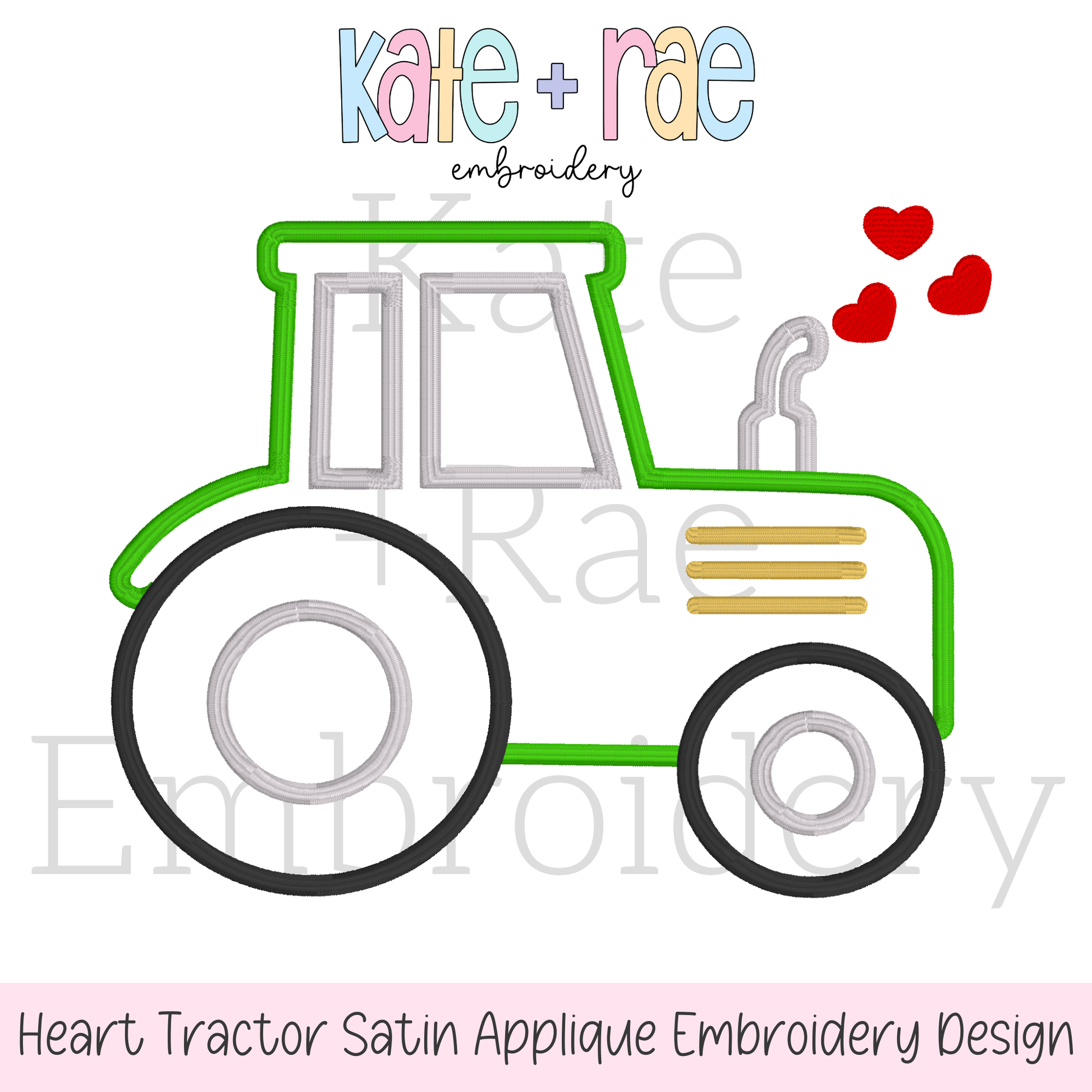 Tractor with Hearts Satin Stitch Applique Embroidery Design