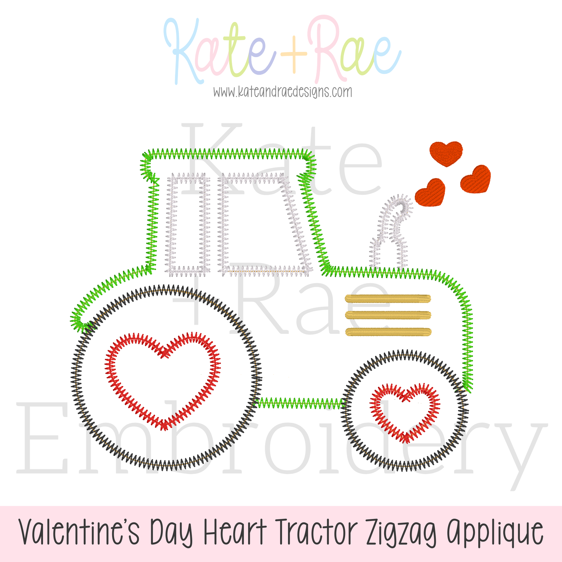 Valentine's Day Heart Tractor Zigzag Applique Embroidery Design