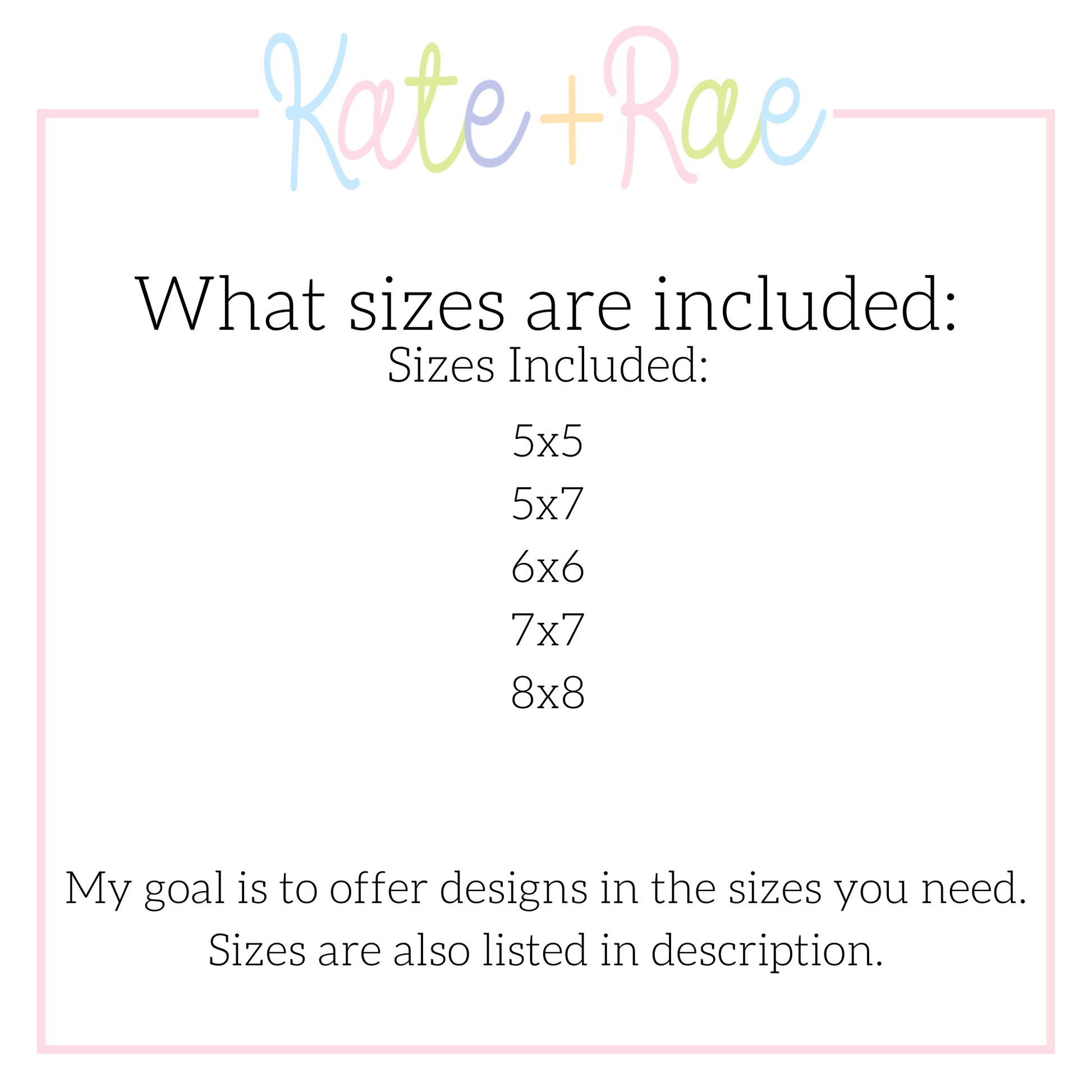 Sizes included: 5x5, 5x7, 6x6, 7x7, 8x8.